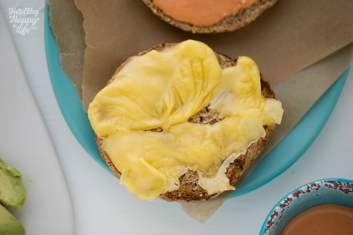 - Warm buns in the hot oven for 1-3 minutes. If using cheese, place cheese on one open bun and place under the broiler in your oven and BROIL for 1-2 minutes to melt cheese. Note: I used Follow Your Heart provolone cheese.