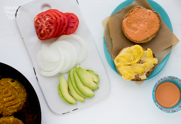 Burger Time. These tender, savory, super flavorful burger patties are accented with all your fave veggie toppings and a super easy amazing spicy-sweet secret sauce using vegenaise and sriracha. I am IN LOVE with this secret sauce actually. Two ingredients and so good.