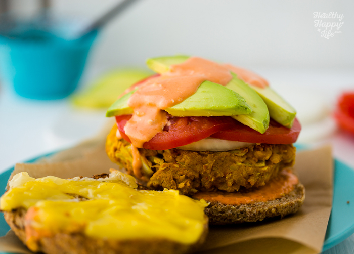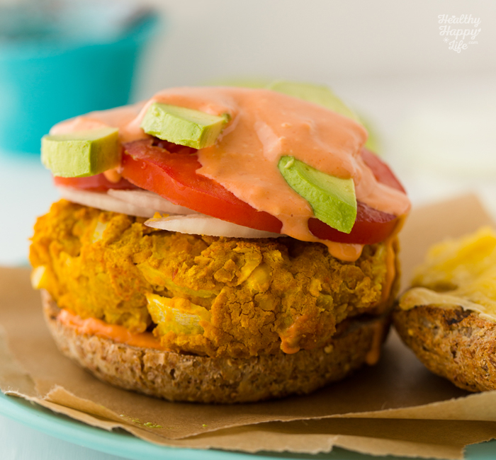 Tags: burger,veggie burger,vegan,entree,dinner,summer,turmeric,beans,avocado,secret sauce,spicy
