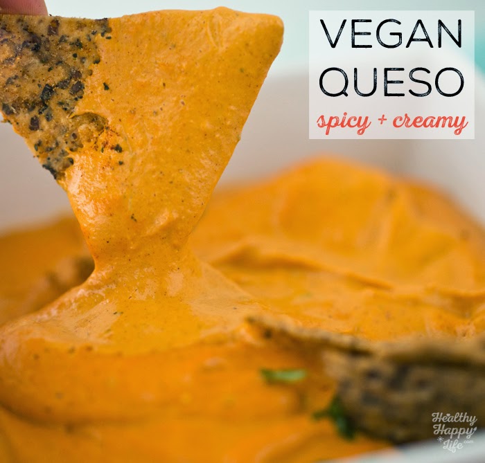 - Add all ingredients to a high speed blender like a Vitamix. Blend from low to high until silky smooth. Blend long enough and at a high enough speed so that the queso becomes slightly warm.
