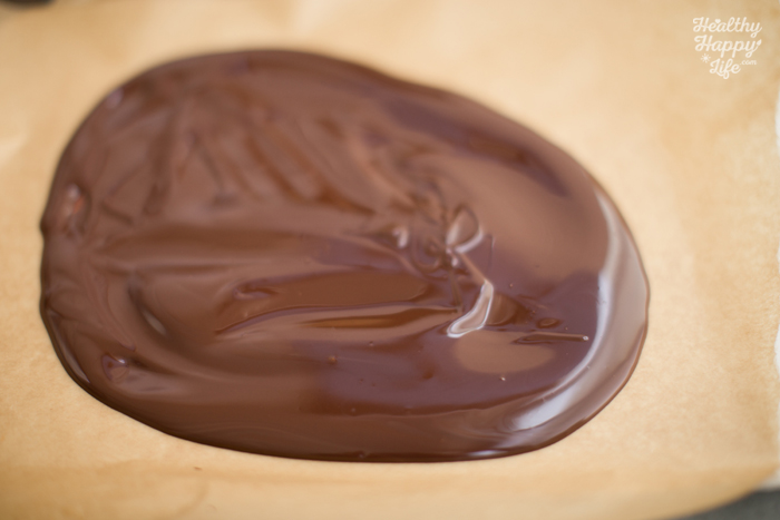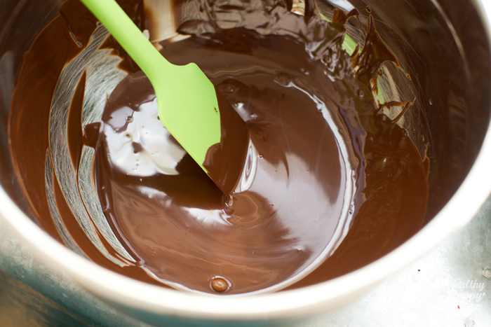 2. Using a double broiler on your stovetop, melt the chocolate until silky smooth.