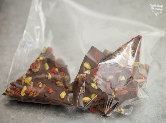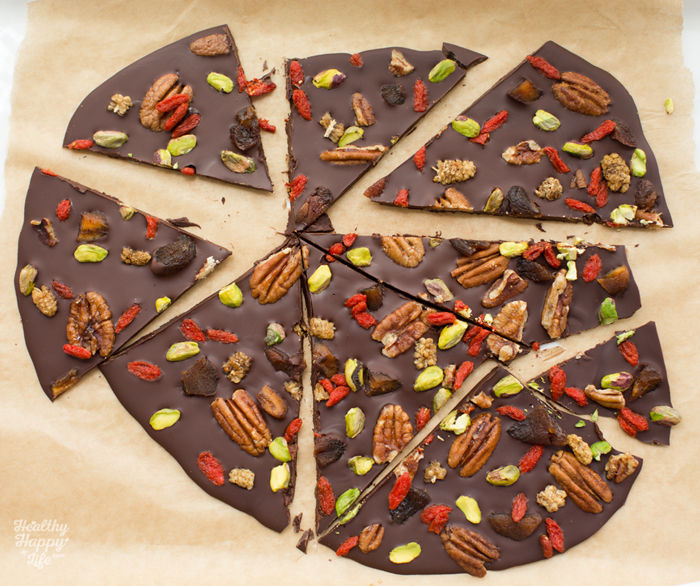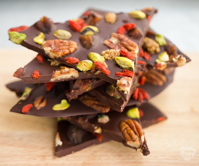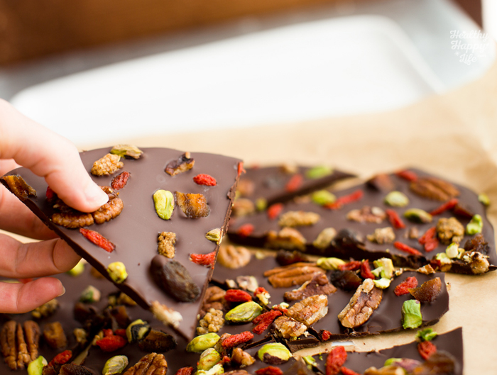 Kathy, this looks so good! I made a similar chocolate bark a few months back, but I made my own chocolate with cacao powder, coconut oil and medjool dates all blended together. I think it's time I made some more...