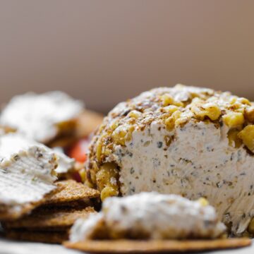 I love a good cheese ball around the holidays! And this Garlic Herb Cheese Ball, made using vegan ingredients, garlic, lemon and fragrant dried herbs is one worthy of a holiday party or simple anytime snacking.