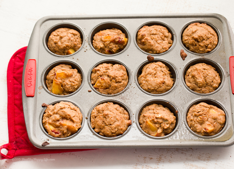 Yum I can't wait to try these! I will sub flour with millet flour and use a little more baking powder to make Gluten Free. I have some banana blueberry muffins I make this way. Can't wait to try your peach variety 🙂