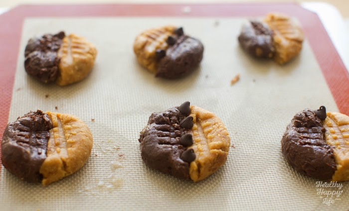 The one tip I would give is to make sure the cookies "spread" at the same rate. And this usually means they should have equal parts fat (oil/vegan butter), flour and sugar. My brownie half did not spread as much as the peanut butter half, so my cookies came out a bit lop sided. But again, I cannot wait to try this technique again.
