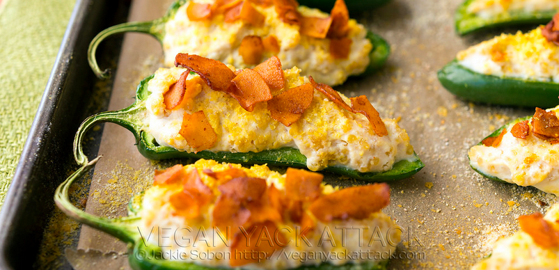 THESE JalapeΓ±o Poppers with coconut bacon from VeganYack Attack