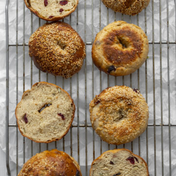 I love raisins in bagels, so the dried cranberries were a similar holiday spin on that texture and flavor. These bagels would be so fun to give as a gift or just whip up and devour all December long. Let's get baking!...
