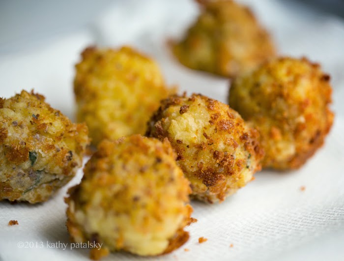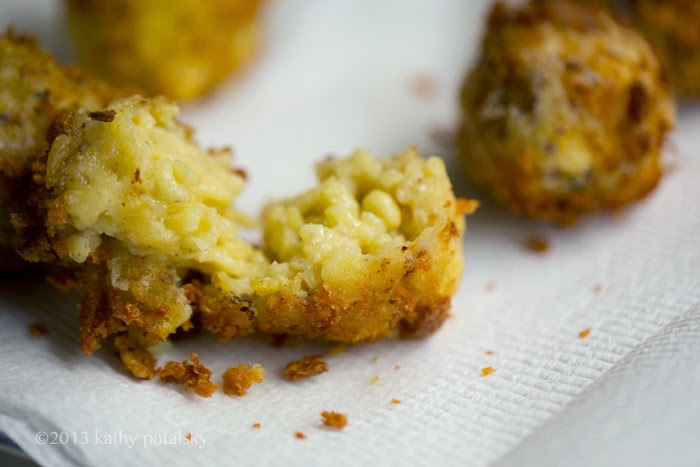 Tip: Try to only fry as many balls as you all are going to eat right away. If you have more risotto, you can always save that in the fridge for a few days. Risotto keeps better than pre-fried balls!