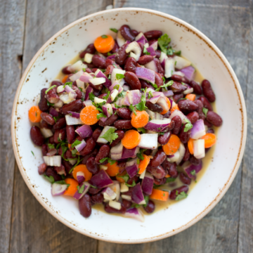 These zesty, peppery kidney beans are delicious and lively. Crunchy carrots, red onion and parsley too. Add them to salads or eat them as is!