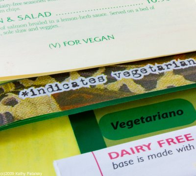 One of my passions as a blogger and vegan foodie, is to create an increased awareness about special diets in the culinary world. More specifically: on restaurant menus. Special diets can include folks who are vegan, vegetarian, diabetic, gluten free, kosher, or people on low fat, low calorie or low sodium diets. Food allergies, also terribly important. The first step when evaluating a new restaurant is the look at the menu. But for a person with a special diet, this process can either be heavenly or hellish. Living in NYC, I see a lot of menus. A lot. So I've become an expert at scanning and deciding whether or not a restaurant is going to be a special diets success. And I have a few tips for you. The five hot features I look for are: Symbols, Sections, Verifications, Glossary and Hidden Gems. I'll elaborate on these terms ahead, and give you a few examples of what I think are innovative and successful special diet menus. Read on to get menu-educated....