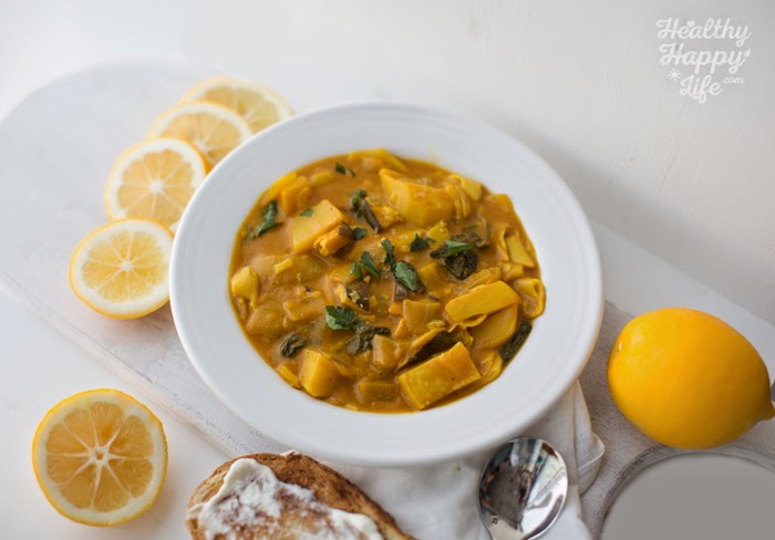 Meyer Lemon Ginger Garlic Turmeric Curry Pasta-Potato Soup