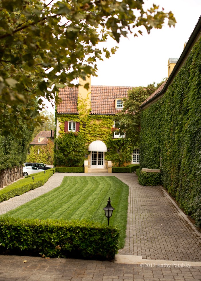Then suddenly you arrive at this lush and private estate that feels like a glowing golden castle on a hill. The European style estate is covered in cascading green ivy, just like out of a fairytale. The air is crisp and all you can hear is the rustling of ivy as few light breezes pass by, and some cheerful birds singing not far away. Cobblestone pathways glide you around the estate. So quiet. I didn't know what to do with all that quiet and open space! I actually had to do a long row of cartwheels on the green grass when no one was looking. I'm sure I was not the first.