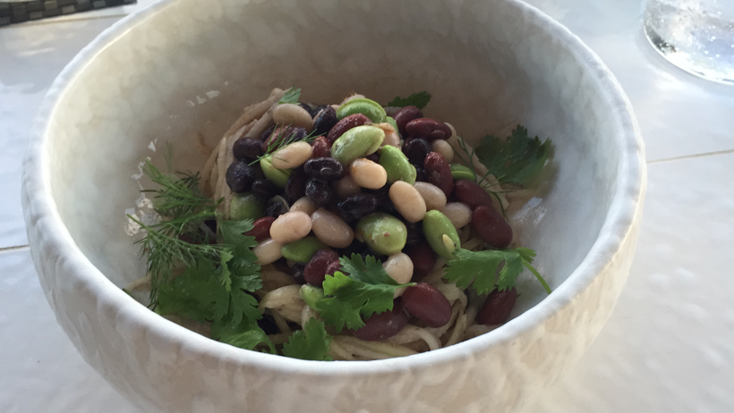 Beans and jicama-noodles in a peanut sauce. SO good. o. m. g.