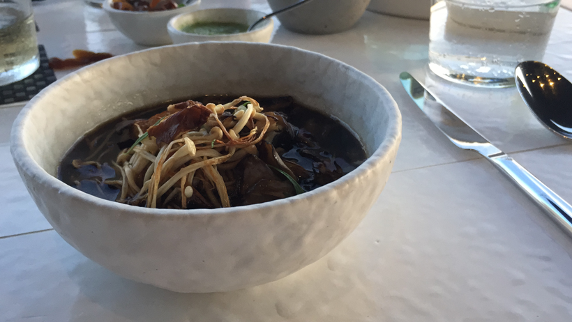 Mushroom consommé with soba..