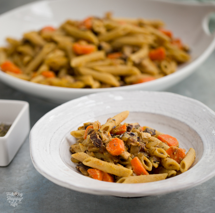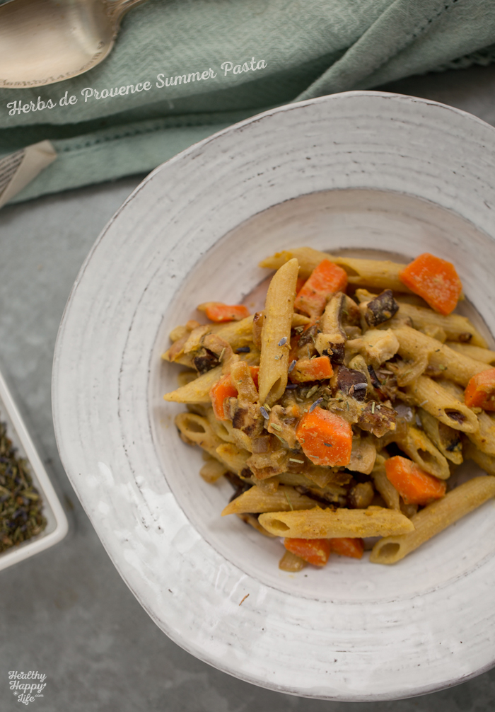 Rustic. Romantic. Vibrant. Savory. Sweet. Fragrant. This Herbs de Provence Garlic-Shiitake-Lemon Pasta is lovely summertime fare. The tender penne pasta is wrapped in a lemon-garlic herb sauce and studded with earthy shiitake mushrooms, caramelized onions and sweet carrots. This is a pasta dish I whipped up using "whatever I had on hand" but after tasting the results, this recipe will be one I will make again and again...