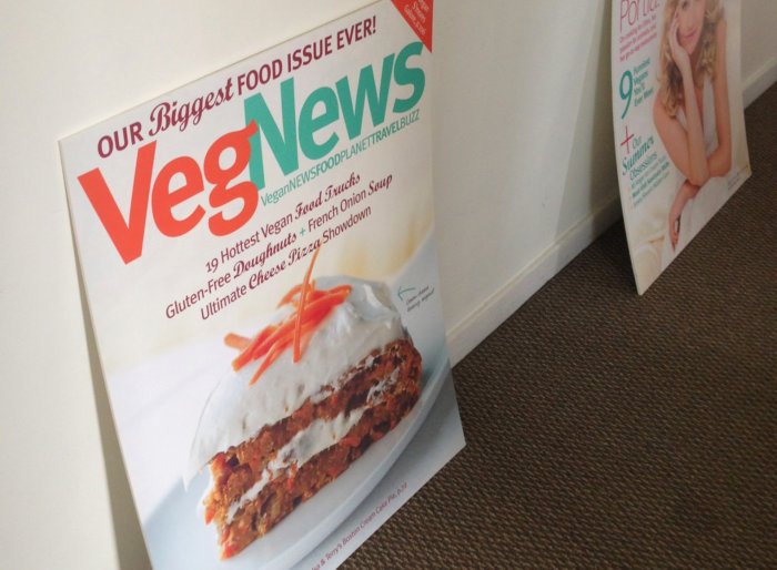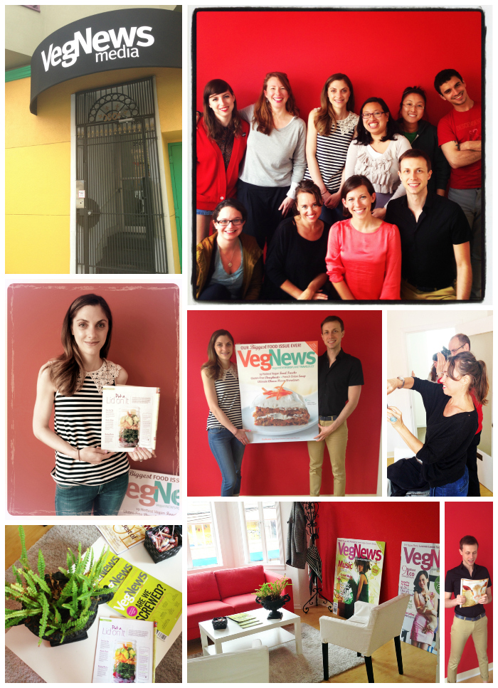 The photo session with the VegNews staff was fun. Nathan from Mercy for Animals was there too! I was excited to see my VegNews cover (the carrot cake issue) blown up to giant size, so I took a few pics with it.
