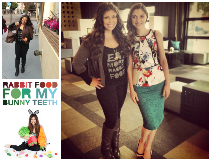 6. Meeting Cat! Catherine from the awesome veg blog Rabbit Food for My Bunny Teeth. There I was just lounging in the lobby of the "W" when this sparkly eyed brunette with a big glowing smile popped around the corner and shouted at me, "Kathy?!? I'm Catherine!!" My mellow mood was suddenly perked up as we chatted for hours about blog stuff and realized how well we get along. Catherine has an inspiring blog where she openly chats about healthy veg eating, her dramatic weight loss (she lost 80lbs!) and more. Cat and I had a lot of fun on this trip and I'm so glad I met her in person! And her blog shirt is THE CUTEST. She might even help me design an HHL tee since she is a talented graphic designer.