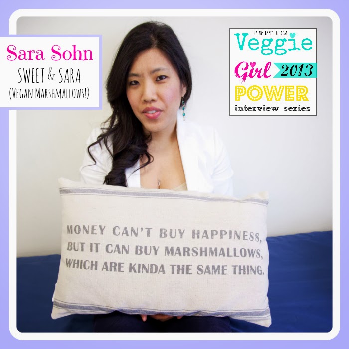 Next up in my summer-long 2013 Veggie Girl Power Interview Series is Sara Sohn, the lady behind the genius creation of Sweet & Sara Vegan Marshmallows - the original manufacturer of 100% gelatin-free, 100% vegetarian and vegan marshmallows.
