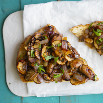 - Top bread with a plentiful amount of mushrooms - as many as you can cram on the slice. Top with optional chopped herbs or a pinch of chopped greens like spinach or kale. Serve!