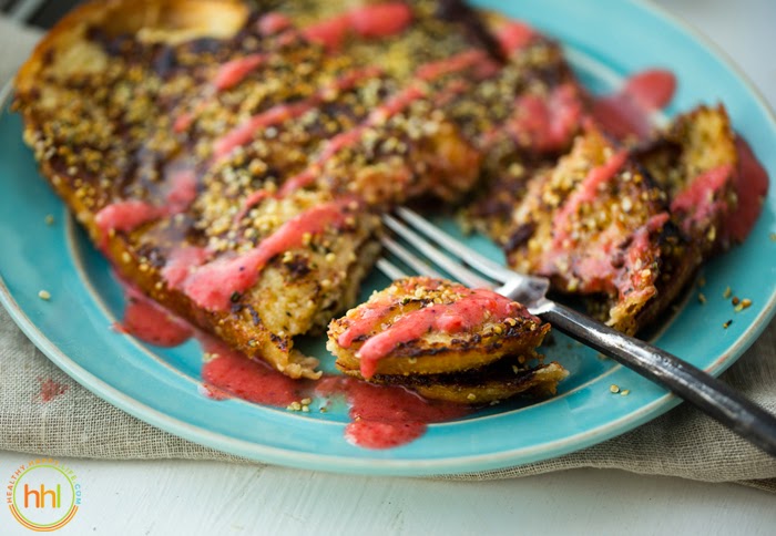 Yield: 6 slicesPrep Time: 00 hrs. 15 mins. Cook time: 00 hrs. 30 mins. Total time: 45 mins. Tags: breakfast,brunch,french toast,strawberry,hemp,cinnamon,vegan,