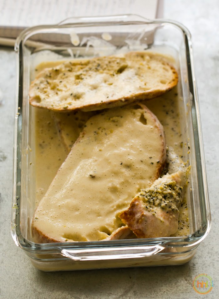 2. Bread. Lets face the facts. The success or failure of French toast is not about the eggs or dairy. It is really all about the bread. And if it was properly soaked. And at the right stage of "day-old-ness." If you use properly "aged" and dry bread, you will easily get delicious results whether or not you add eggs. My most favorite bread is day-old sourdough. I pull my bread straight from the freezer, soak and toss on the skillet! Bread usually dries out quite a bit after being in the freezer for a while. Or you can use room temperature day-old bread. The crustier the better .. less sogginess in the finished product.