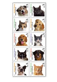 About the Stamps: "The pets depicted on the stamps were photographed by Sally Andersen-Bruce near her home in New Milford, Connecticut. All had been homeless at one time; all but one had been adopted when they were photographed." Learn more and see how Ellen DeGeneres is involved!...