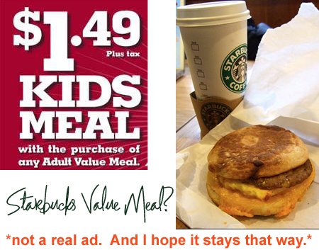 I frequently purchase a chai latte and a bagel on the side. If this was say "the number three" on the value menu and I saved fifteen cents of so...I would feel kinda cheap! If I want to order off a value meal (which I really don't) I would go to McDonald's.
