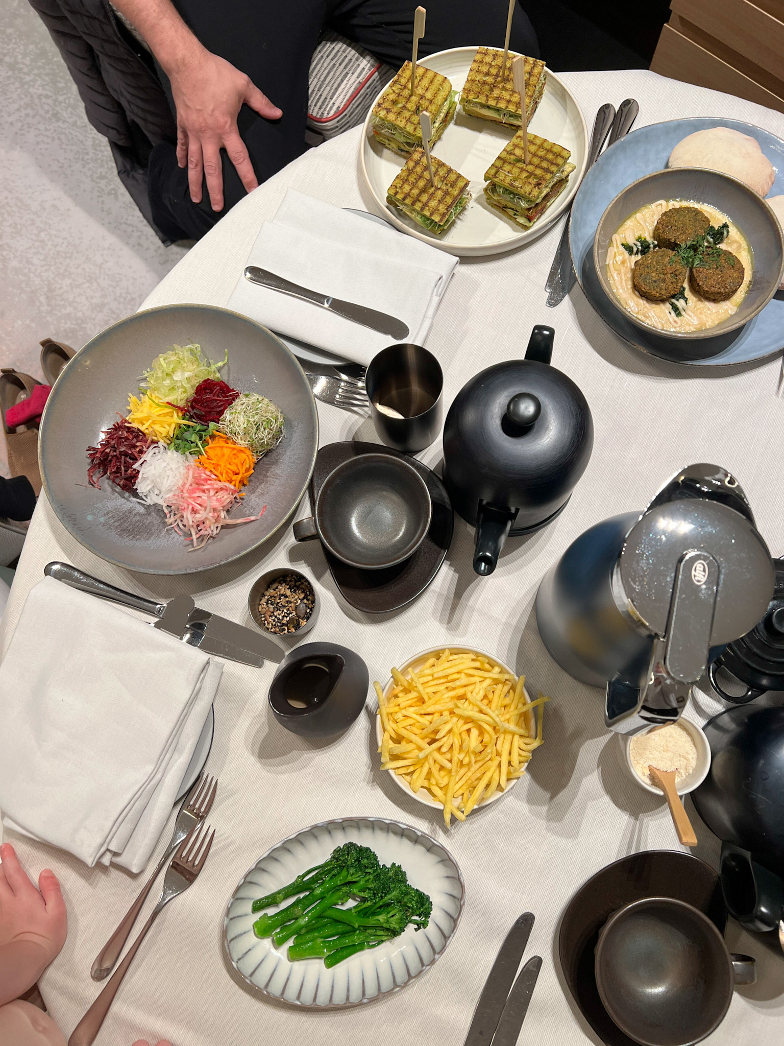 PM: Room service again! Do you see a trend here? They had a yummy vegan wrap! And the toddler had pizza.