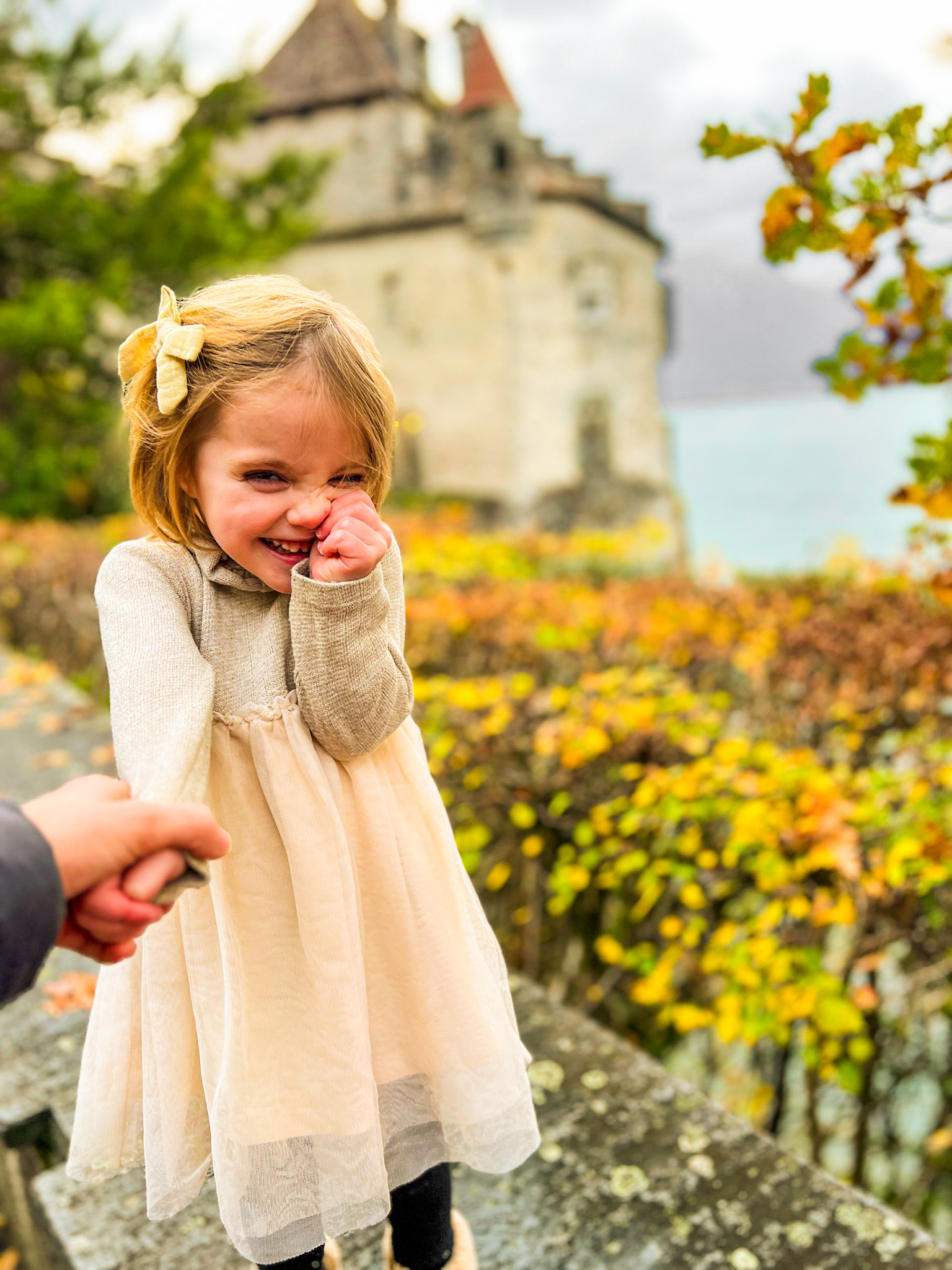 We explored the market again, visited playgrounds and ended out day at Chillon Castle. So gorgeous! Rosalie loved exploring the cobblestone halls and secret passageway in the very old bedroom of the castle. We took some cute photos there too. I tried to dress up a bit to get some cute family pics.