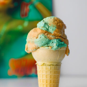 Paired with some pop culture commentary, I give you my sweet and swirly, orange and teal The Life of a Showgirl Ice Cream, a la Taylor Swift-inspired glory. Enjoy it while twirl around in your kitchen to the beat of Opalite crooning, dancing through the lightning strikes..