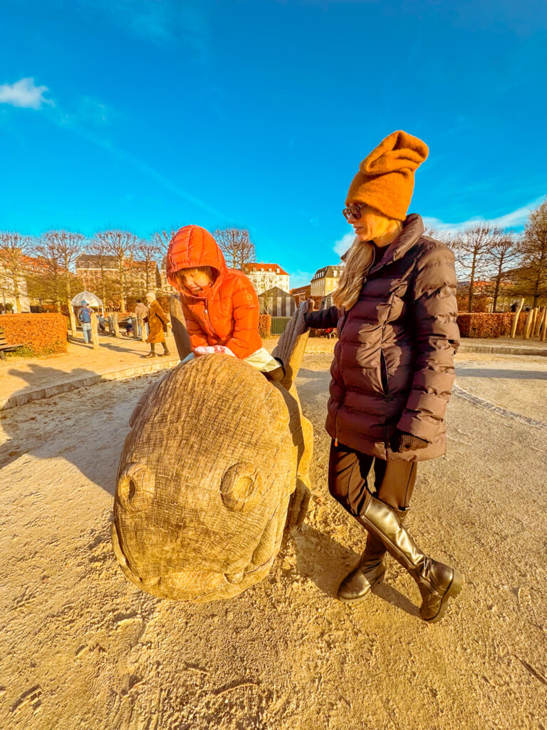 Copenhagen also has some amazing green spaces—the King’s Garden (Rosenborg Castle Gardens) is a beautiful spot to run around, and the playground there was a hit. The castle itself is a quick visit that is very cool to see. Rosalie loved seeing the throne chairs and even climbing the tall spiral stairs. The park around the corner has wooden dragons! Super fun and very GOT vibes.