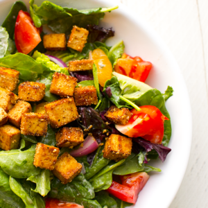 These simple and tasty Tofu Croutons are perfect for adding a punch of protein to your salad or soup. They have a mild cheezy, peppery flavor and golden edges all around. Infuse some serious flavor into your tofu, and fall in love with it all over again!
