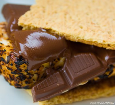 Campfire Method: Toast your marshmallows over the fire. Get your crackers and chocolate ready. Place the hot, black-charred marshmallows on top of the chocolate and smush them between the crackers. The hot marshmallow will help melt the chocolate.