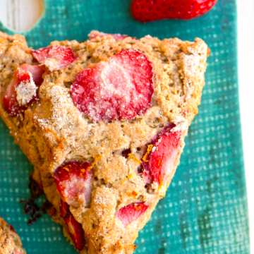 These fluffy scones bake up with tender insides and a crispy, buttery outside. The flavor is fresh strawberry meets orange zest and a hint of banana. I am in love. These are the perfect breakfast or brunch scones. I love the fruity flavors and energizing citrus aroma! Enjoy!..