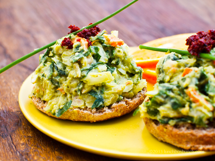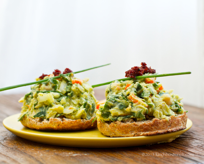 DELICIOUS! I'm eating this as I type and it's scrumptious! I used minced onion because I've let my pantry run low : ( I added garlic salt, Himalayan salt, capers not ac vinegar, used lots of spinach and dried cooked cannollini beans because I had them leftover from your Leprechaun dip. I'm not a big bread eater so I overstuffed 1/2 of an avocado and viola! Lunch, and probably dinner : )
