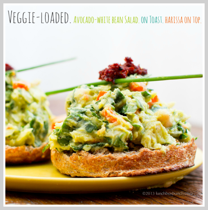 This delicious Veggie-Loaded Avocado White Bean Salad on toast is an easy vegan lunch (or dinner!) recipe to try. Avocado-lovers, meet a pumped up version of "avocado toast." Serve as an open-faced sandwich for a light and lovely lunch, or serve along side a spicy broth-y soup for a hearty dinner feast. The vibrant veggies and rich creamy avocado merge perfectly with nutty rustic white beans, and accents of citrus, white miso, cayenne and pepper.