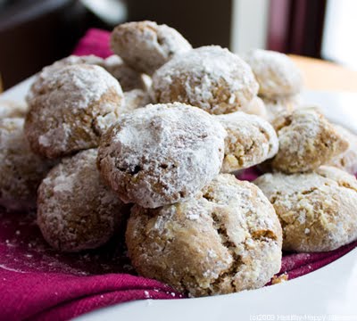 The Finale. Like I said, I saved the best recipe for last. This one is a keeper! My suggestion: Turn up the volume on your Nutcracker Suite iPod music and get in the kitchen to make these spicy, nutty, powder-sugar embraced cookies. The Sugarplum Fairy will be jealous. Heavenly smells, flavors and giggles await you...