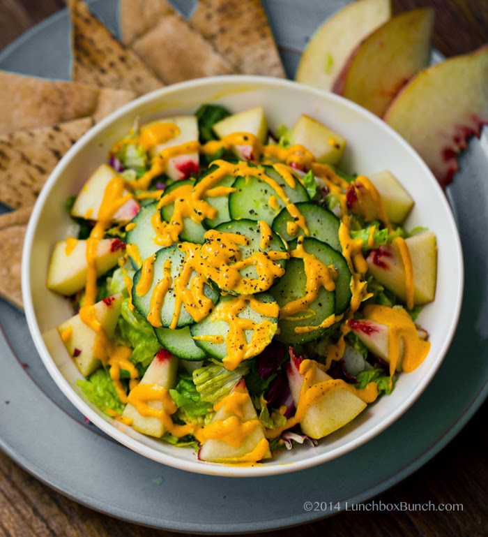 White Peach Salad with Creamy Cashew Carrot-Ginger Dressing