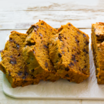 This moist and fluffy vegan pumpkin loaf is studded with chocolate chips. Loads of pumpkin spice flavor in every bite.