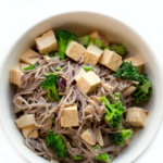 Add the tofu, broccoli and red onion to a large mixing bowl. Add ¼ cup of sauce and toss well. Then add in the noodles. Gently toss well - try not to break the noodles if they are still slightly warm.