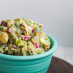 Drain water from potatoes and set aside. You want your potatoes to cool down a bit before mixing with the other ingredients. Sometimes I use an ice bath to help this process along! The hot potatoes melt the ice and then I just strain the water out again.
