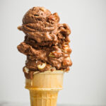 Super creamy, rich chocolate ice cream studded with crunchy almonds and fluffy mini marshmallows. This frozen dessert is dairy-free, plant-based made using cashews.