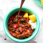 Remove lid and stir. Taste. Adjust salt and chili powder if needed. Simmer for another few minutes to cook down to desired consistency/thickness.