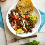 Scoop the bean mixture into serving bowls and serve alongside the guac or avocado - and the warmed tortillas.