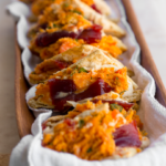 These pockets have everything Iove about the holidays in a cozy little pita pocket triangle. Cranberry sauce, hummus, sweet potato mash and crispy oven-toasted pita bread.