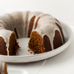 Let the cake cool for 15 minutes and then carefully loosent he edges and flip onto a baking rack to cool. You want the cake completely cool before adding the glaze. I like to place in the freezer for 10 minutes right before adding the glaze.