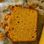 Fluffy and moist vegan pumpkin bread with a buttery sweet, crumbly cinnamon streusel topping.