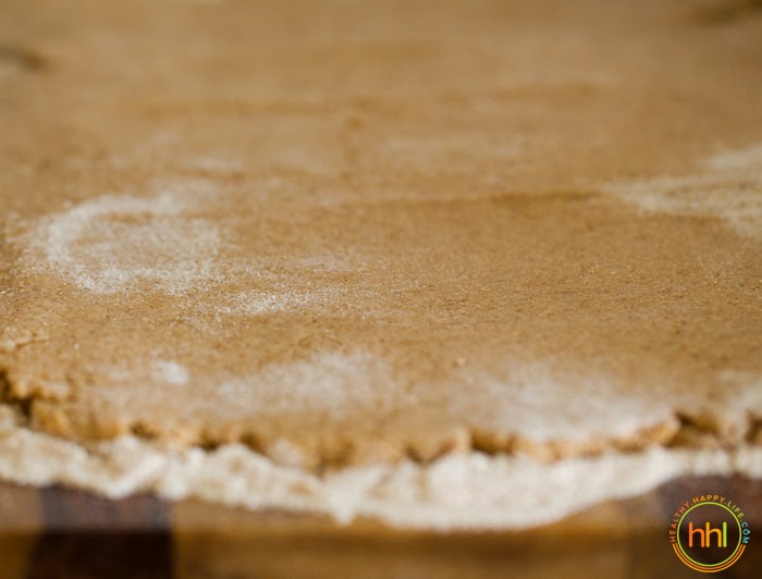 - Sprinkle down 2 tablespoon of flour onto a surface to roll out the dough. Using a rolling pin, roll out dough until about ΒΌ inch in thickness. As thin as you can get without compromising the dough and making it split apart.